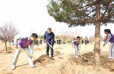 在京中共中央政治局委员、中央书记处书记、国务委员等参加植树活动。