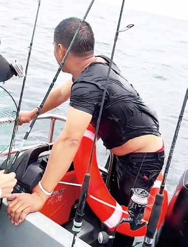 前两艘船都与黎法东擦“身”而过,林进健驾驶的海钓船是第三艘。当时,他正载着钟林弟、陈日祥、莫柏铭、龙上钦、李华兴等湛江钓友从闸坡国家级中心渔港出发没多久。接到救援电话后,船上钓友均同意暂停出海海钓,于是改变方向往南鹏岛方向搜救。“他的运气真的很好,很快就被我看到了。”林进健说,他看到远处海面有一个黑点,靠近后发现正是仰面漂浮着的黎法东。